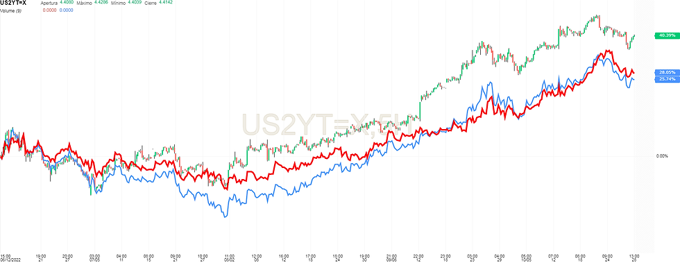 La rentabilidad del tesoro a 2 años cae desde su nivel mas alto de 4.60% la semana pasada, cerrando con una rentabilidad de 4.4142.